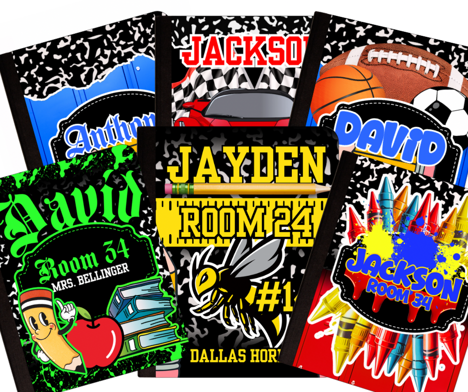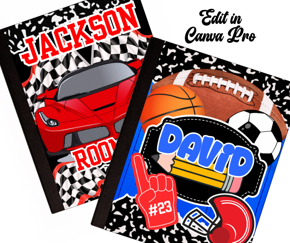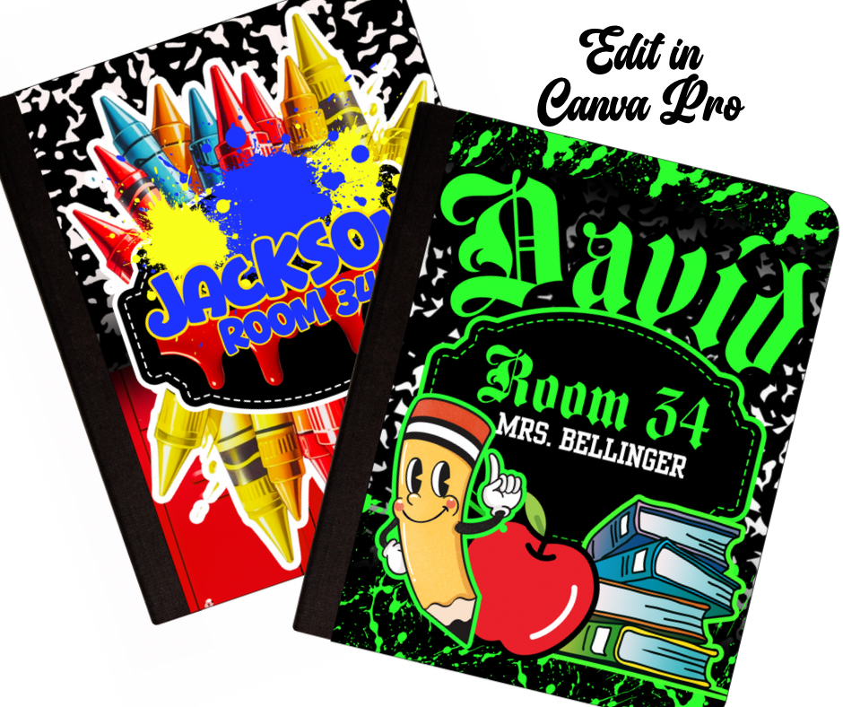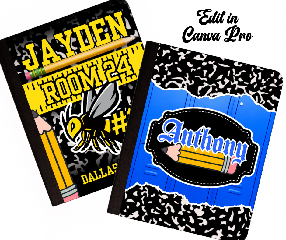 Set of 6 composition notebook templates for editing in Canva pro. Perfect for back to school!