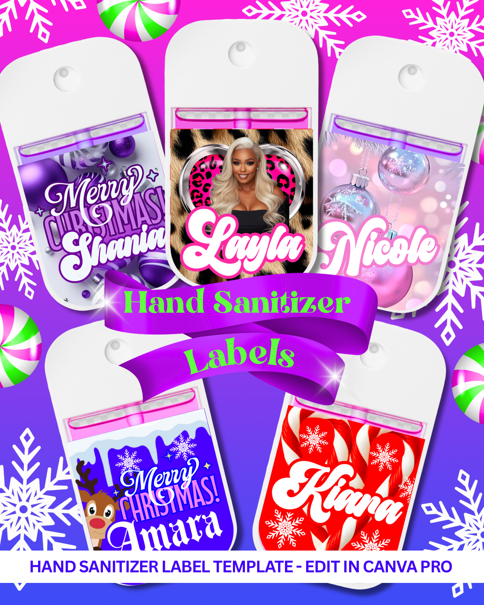 A set of 15 hand sanitizer label templates, these make perfect stocking stuffers or gifts for besties! Editable in Canva pro. This is a digital product, no physical product will be shipped.