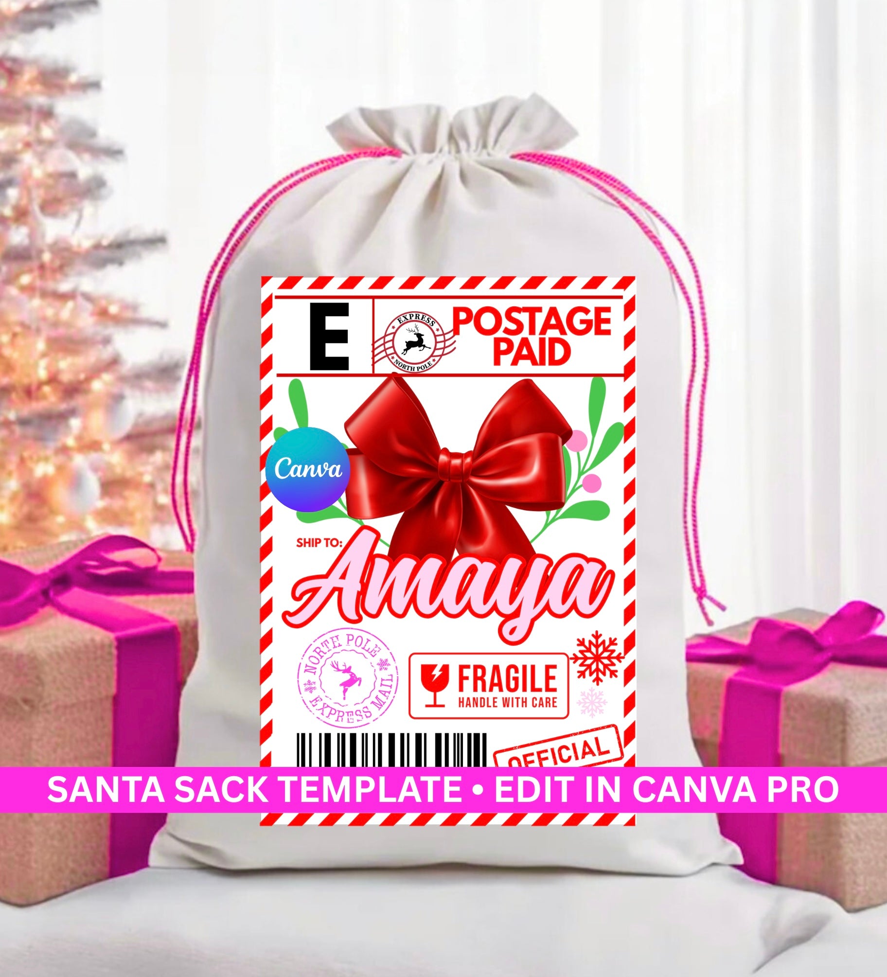 Holly Berry Jingle! Itβs a set of 4 Santa Sack templates, perfect for Christmas gifts & surprises. Each template measures approximately 19x27β π Edit in Canva pro. *This is a digital product-no physical product will be shipped.Β