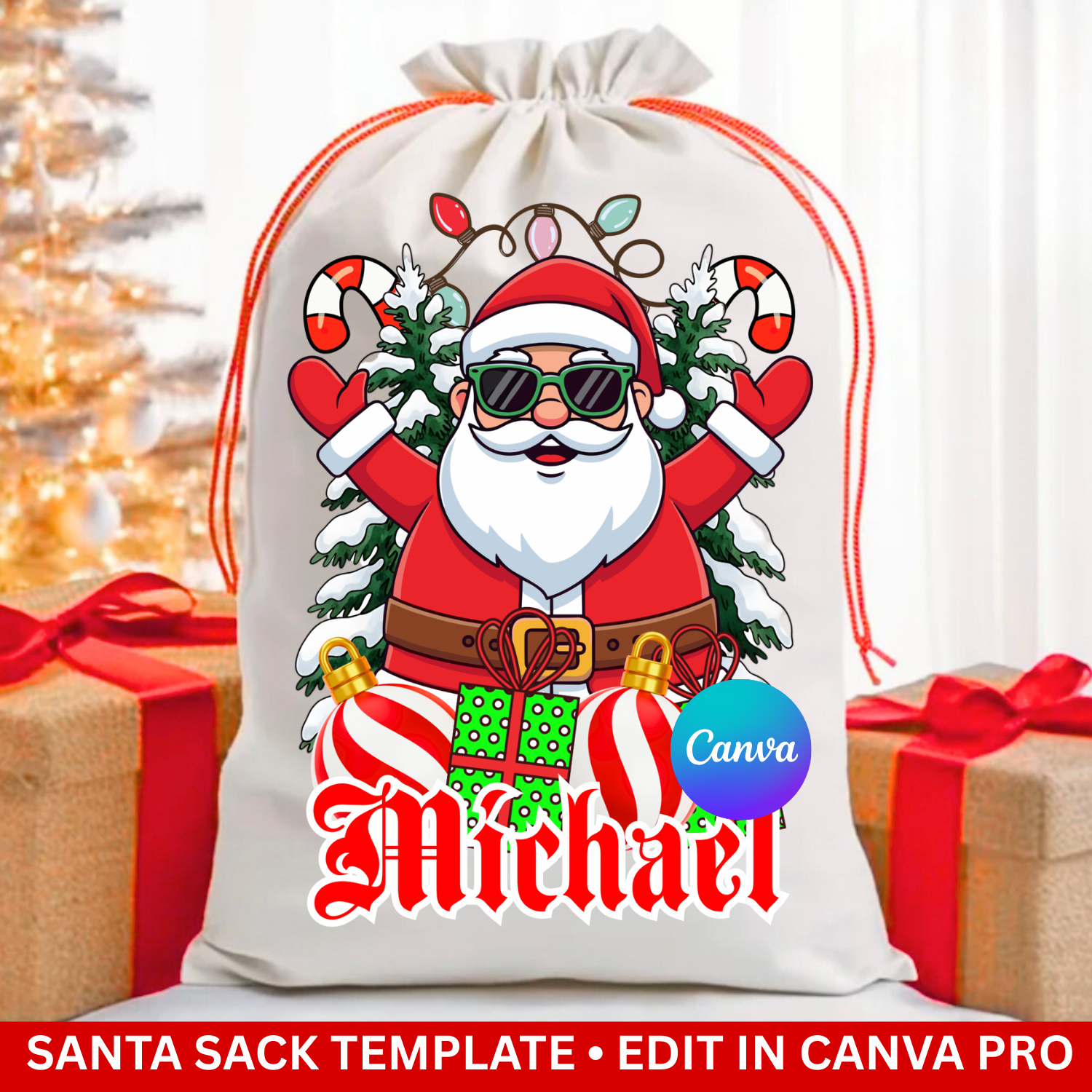 A set of 4 Santa sack templates, perfect for Christmas gifts! Each template fits a 19x27” sack, and can be easily edited and sized in Canva pro. This is a digital product, no physical items will be shipped.